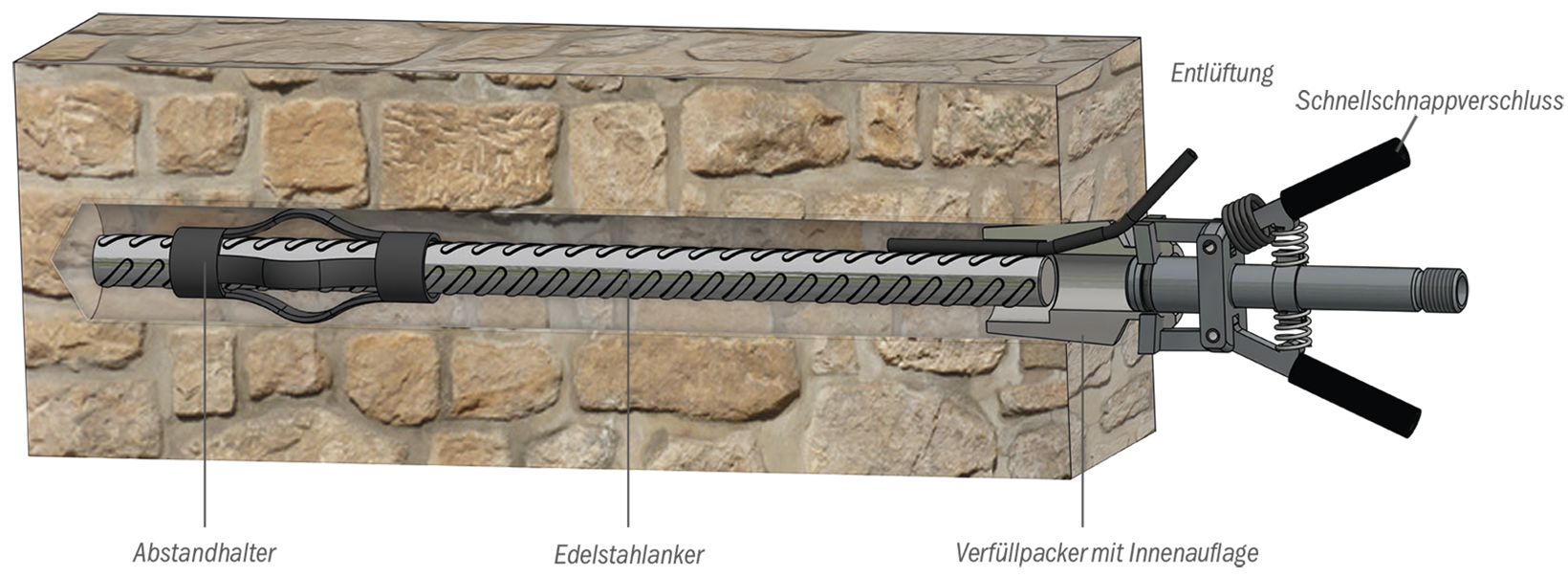 • Der Verfüllpacker kann nach der Injektion einfach entfernt werden und ist nach der Reinigung wiederverwendbar