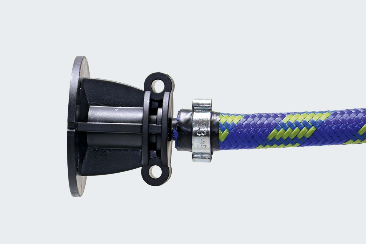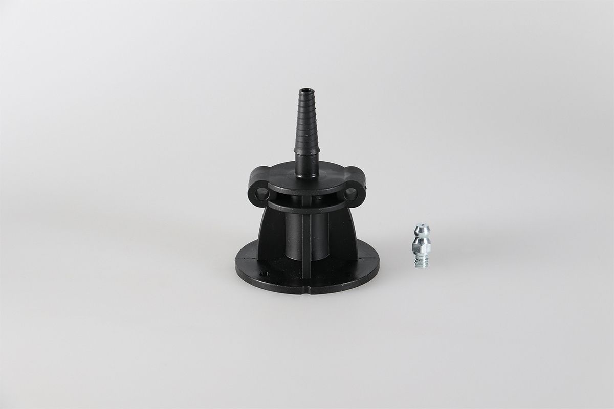 black, internal thread M8, insertion sleeves for nail packer holder, white protective plug for filling side, HP round head nipple M8 (separately enclosed)